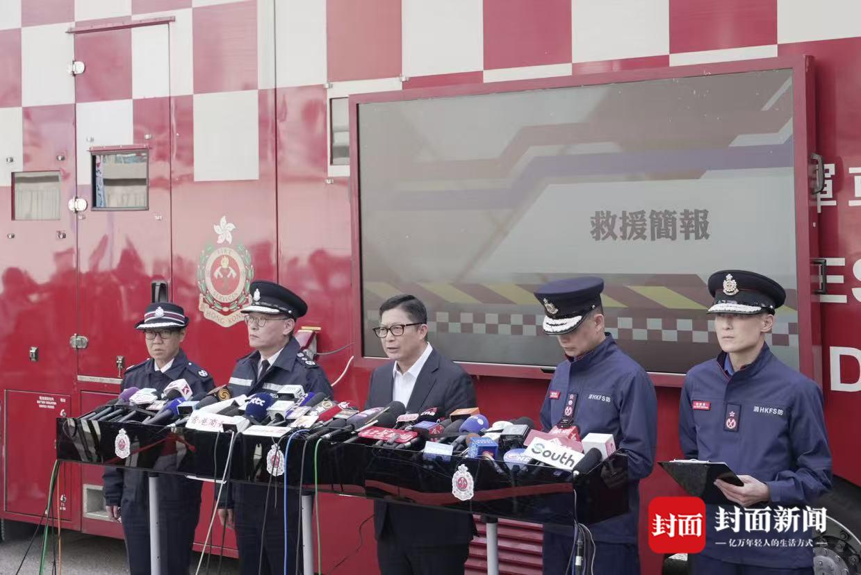 11月28日,香港保安局、消防处警务处联合召开传媒见面会,发布大埔5级火警救援调查进展。