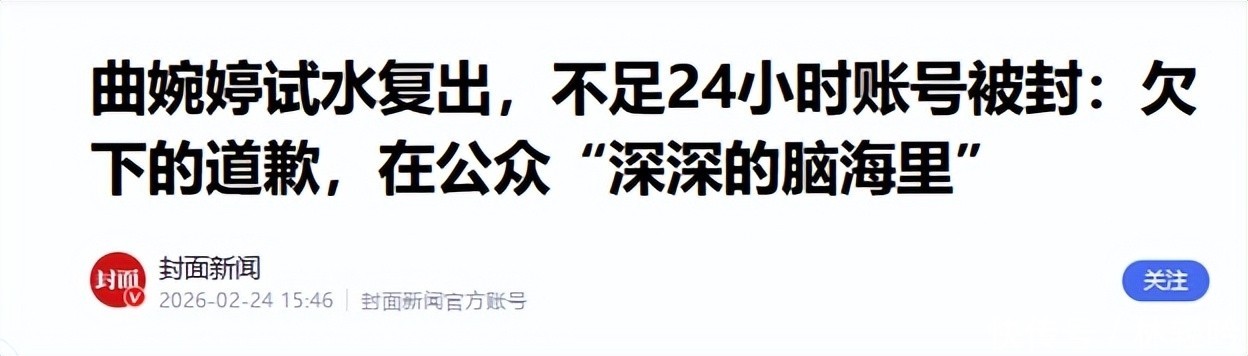 2月22日,有网友发现曲婉婷悄然开通抖音官方账号,并上线两条春节祝福短视频。