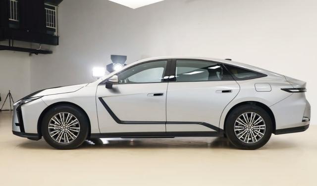 车身侧面造型同样不落俗套,车身上半部分设计比较常规,笔直腰线向上倾斜延伸至车窗下沿,最特别的一点是在车身表面加入一段折线状熏黑饰板,说实话看起来有些画蛇添足,不过确实能够提高辨识度。此外,相较于上一代车型,新一代雷克萨斯ES的车身长度增加165mm,轴距增加80mm,分别来到5140mm和2950mm,不仅从视觉效果来看更修长,而且有助于进一步拓展车内空间。